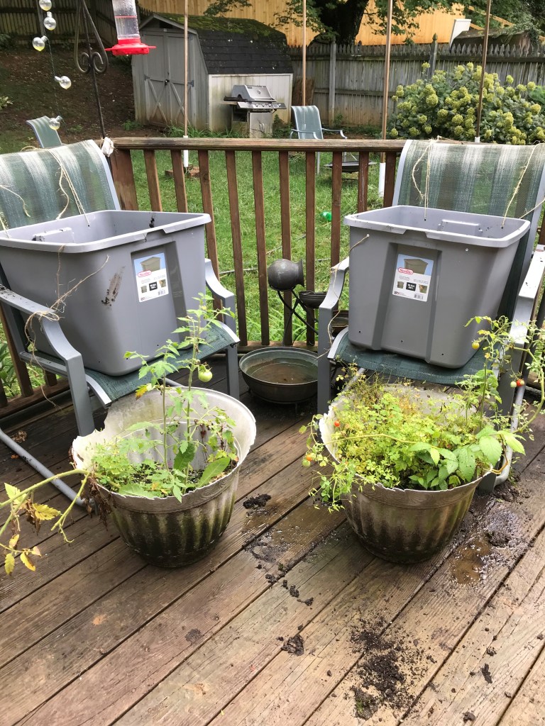 I love gardening. It is therapeutic for me. I start most of my vegetable from seed in Feb. or March. By May, they are ready to plant. I just planted some fall vegetable, Kale, Romaine Lettuce, and Swiss Chard. Trying container planting. Had to rig it so that my dog could not pull it down. I hope it works, I am out of chicken wire. See pics below.