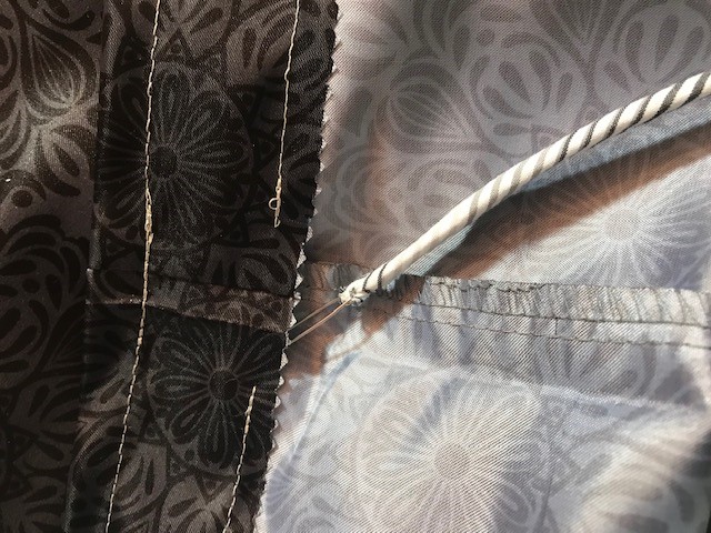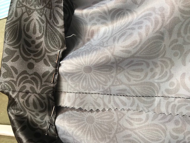 - Leave an opening for inserting the ribbon into the hem. Mark the opening with pins so that you know where to start and stop.