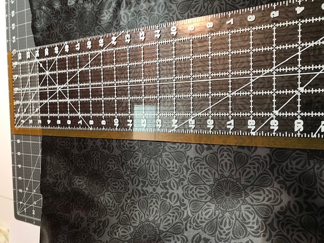 - Once cut, turn bag inside out and for the half where the bottom is already sewn together, fold down edge about 1/4 to 1/2 inch and press, then turn down about 1 1/2 to 2 inches and press again. stitch close to the 1/4 inch folded edge.